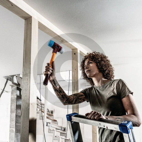 Wersja:młotek simplex z miękkim obuchem w kombinacji zastosowań TPE-miękki (niebieski, miękki, nie ściera się) / TPE-Mid (szary, średnio twardy, nie ściera się).