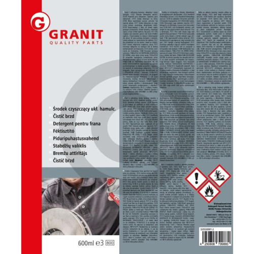 Wersja:Do czyszczenia hamulców tarczowych, części hydraulicznych, silników itp. Usuwa oleje i smary.