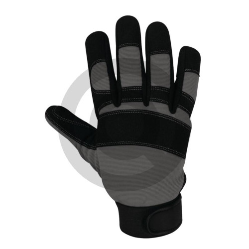 | • Handinnenfläche und Fingerspitzen verstärkt mit PVC-Pads für sicheren Halt und optimalen Schutz | |